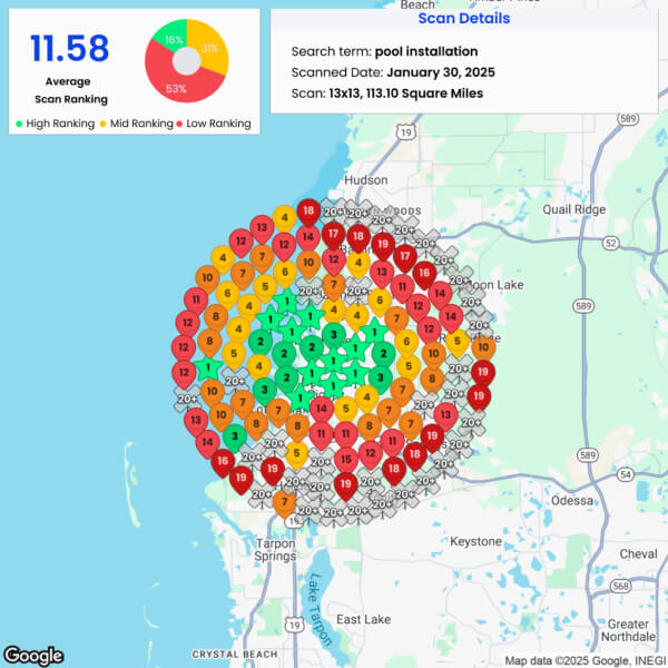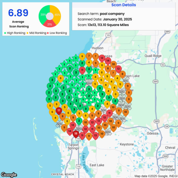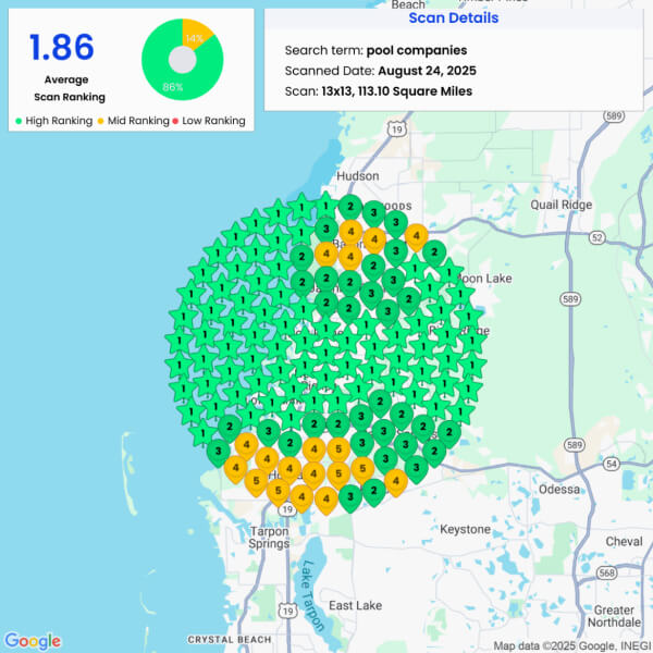 - Local GEO Dominator Tracking: Monitor keyword performance across Tampa Bay suburbs with monthly grid scans.