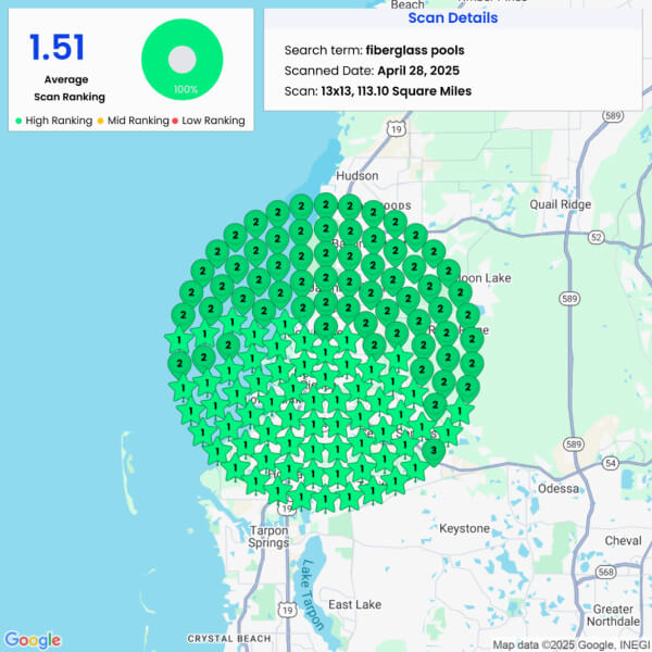 This transformation means Hawaiian Island Pools not only dominates searches for fiberglass pools and installation in New Port Richey, Tampa, and surrounding areas, but also now appears in the top results for high-intent “near me” searches that drive qualified leads.