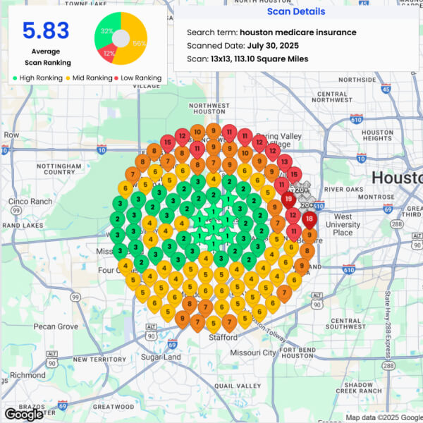 - “Houston Medicare Insurance” improved from 5.83 → 2.59