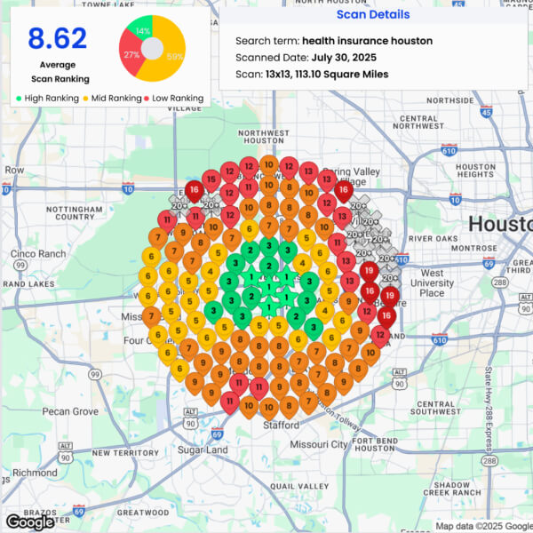 - “Health Insurance Houston” improved from 8.62 → 3.91